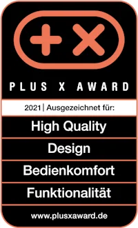 Avec plus de 700 marques internationales participantes, le Plus X Award est le plus grand prix de l'innovation au monde pour les secteurs de la technologie, du sport et du lifestyle. Un jury international et indépendant, composé d'experts neutres de l'industrie, de journalistes spécialisés et d'observateurs du marché, évalue divers produits en fonction des facteurs Plus X, qui sont ensuite récompensés par les sceaux de qualité Plus X. Les produits nominés sont évalués pour leur valeur ajoutée méritant une récompense dans les catégories Innovation, Haute Qualité, Design, Confort d'utilisation, Fonctionnalité, Ergonomie et Écologie.