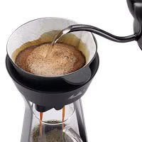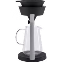 Cafetière au design très joli et moderne, livrée avec quelques filtres ce qui permet de l'utiliser dès réception, Le système de fermeture permet de développer les arômes dans un premier temps avant de faire couler le café, Le café est plutôt rapide à faire, en 5min il est prêt, la petite carafe est très jolie mais paraît un peu fine. Je recommande pour ceux qui aiment faire le café manuellement.