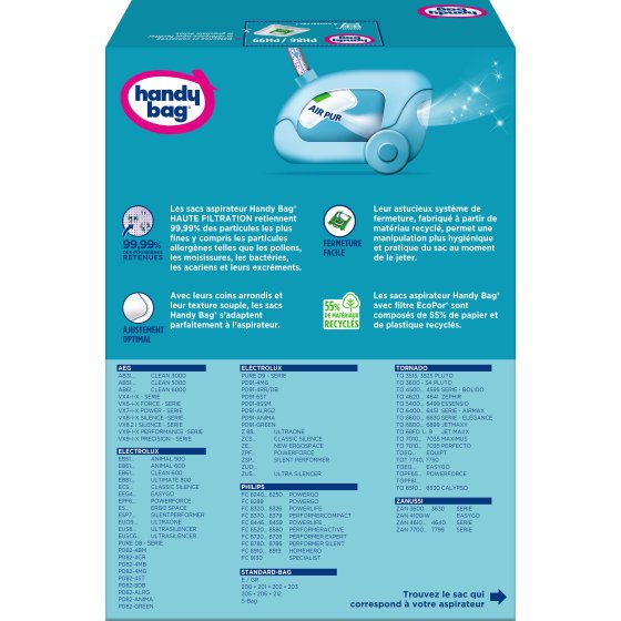 Sacs aspirateurs Handy bag® Haute Filtration, pour une maison propre et saine.