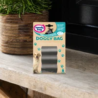 Le sac Doggy Bag est la solution pratique et hygiénique pour ramasser les déjections canines sans se salir les mains. Le sac à poignées est opaque, ne laissant donc pas apparaître son contenu.Pensez au tri : la bande papier protégeant ce produit est en papier 100% recyclé et 100% recyclable. Veillez à jeter cet emballage dans le bac de tri.
