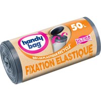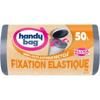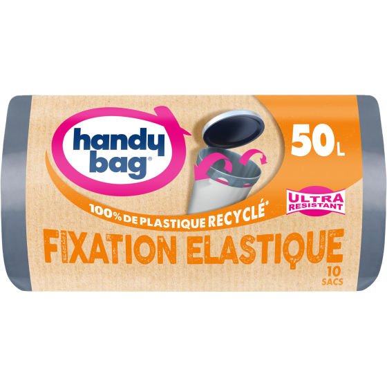 Sacs poubelle fixation élastique 50L x10, 100% plastique recyclé, Handy Bag