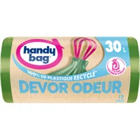Sacs poubelle poignées coulissantes Dévor Odeur 30L x12, 100% plastique recyclé, Handy Bag