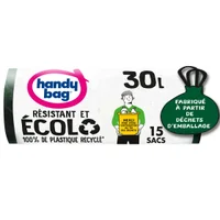 Sacs poubelle poignées coulissantes Écolo 30L x15, 100% plastique recyclé, Handy Bag
