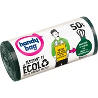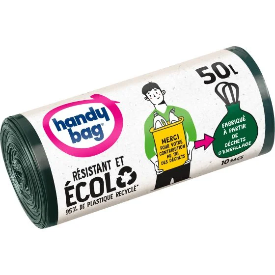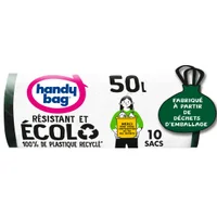 Sacs poubelle poignées coulissantes Écolo 50L x10, 100% plastique recyclé, Handy Bag